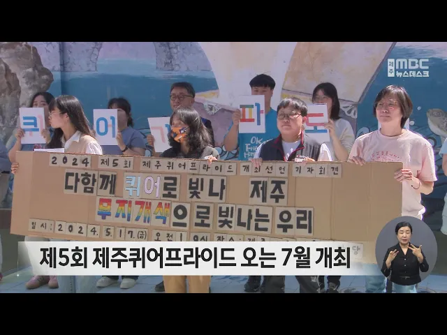 제주에서 2년 만에 성소수자들의 축제인 퀴어 축제가 열립니다. 제주퀴어프라이드 조직위원회는 오늘 국제성소수자 혐오 반대의 날을 맞아 기자회견을 열고, 7월 13일 제5회 제주퀴어프라이드를 연다고 밝혔습니다. 조직위는 행정 절차상 아직 장소를 정하지 못했지만 제주에서 인권과 평화, 차별 반대와 존엄을 함께하는 ...