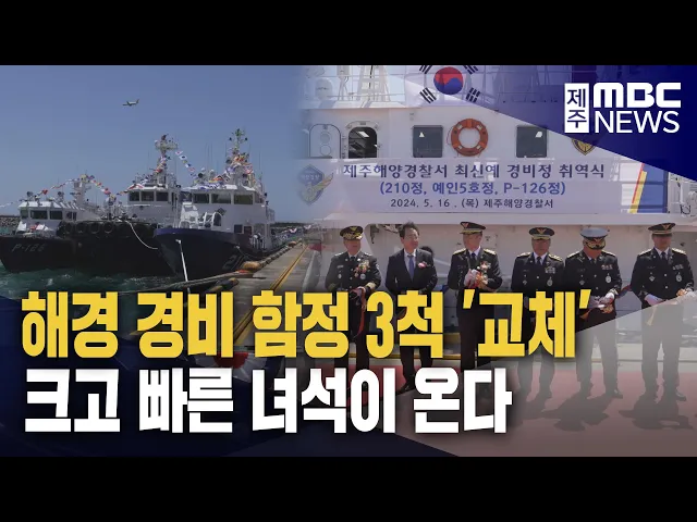 ◀ 앵 커 ▶제주해경에 30년 가까이된 경비함정과 예인정 3척을새로 바꿨습니다. 최첨단 기능이 탑재됐고, 크기도 훨씬 커졌는데요. 해상 경비와 단속이 더 강화될 것으로 기대됩니다. 이따끔 기자가 보도합니다.◀ 리포트 ▶제주항 부두에 나란히 모습을 드러낸 함정 세 척.올해 새로 건조한경비함정 두 척과 예인정 한 척입니...