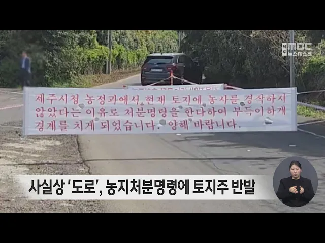 사실상 도로로 쓰이는 농지에 대해제주시가 처분 명령을 내리자 토지주가도로를 차단하는 등 반발하고 있습니다. 오늘 오전, 제주시 영평동의 한 도로에진입 금지 현수막과 차단봉이설치돼 제주시가 현장 확인에 나섰습니다. 토지주 측은 지목 상 밭으로 되어있지만도로로 이용 중인 토지를 제주시가농사를 짓지 않는다고 ...