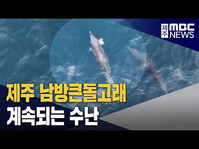 ◀ 앵 커 ▶ 제주 해역에서 사는 멸종위기종, 남방큰돌고래의 수난이 끊이지 않고 있습니다. 낚시 바늘에 걸린 돌고래가 또다시 포착됐고 새끼들의 죽음도 잇따르고 있습니다. 이따끔 기자가 보도합니다. ◀ 리포트 ▶ 바다 위로 헤엄치는 수 십마리의 남방큰돌고래. 한마리가 무리 밖으로 벗어나더니, 배를 뒤집어 헤엄치...