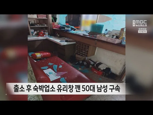 출소 후 숙박업소 유리창 깬 50대 남성 구속
