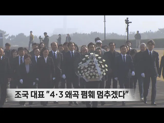 조국혁신당 조국 대표가제주4·3의 진실을 제대로 알리고왜곡과 폄훼를 멈추겠다고 밝혔습니다. 오늘 제주4·3 평화공원을 찾은조 대표는 유족들을 만나 집권 여당에서도 4.3을 폄훼하는 발언이 나왔지만 정부는 손을 놓고 있다며, 명예훼손을 처벌할 수 있도록 제주4·3특별법을 개정하겠다고 약속했습니다. 이어 제주시 동...