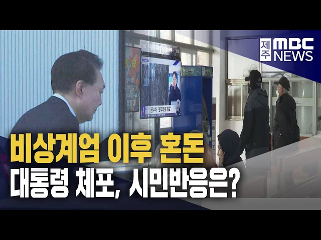 ◀ 앵 커 ▶ 12·3 비상계엄 사태 이후 제주는 관광객이 급감하면서 당장 지역 경제가 위기를 맞았는데요. 시민들은 대체로 대통령 체포에 안도하는 분위기 속에 평온했던 일상으로의 복귀를 기대하고 있습니다. 이소현 기자입니다. ◀ 리포트 ▶ 버스를 기다리며 대합실에 앉은 시민들이 텔레비전에서 쏟아지는 뉴스 특보에 ...