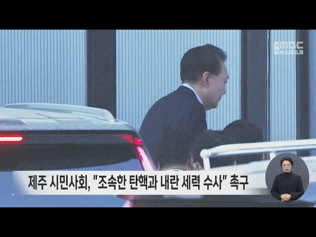 내란 수괴 혐의로 윤석열 대통령이 체포된 가운데, 제주에서도 철저한 수사를 요구하는 목소리가 잇따랐습니다. 도내 시민사회와 노조, 정당 등으로 구성된 윤석열정권퇴진·한국사회대전환 제주행동은 성명을 통해 윤석열에 대한 즉각 구속을 통해 내란 잔당을 척결하고, 탄핵심판에 속도를 내야 한다고 강조했습니다. 민...