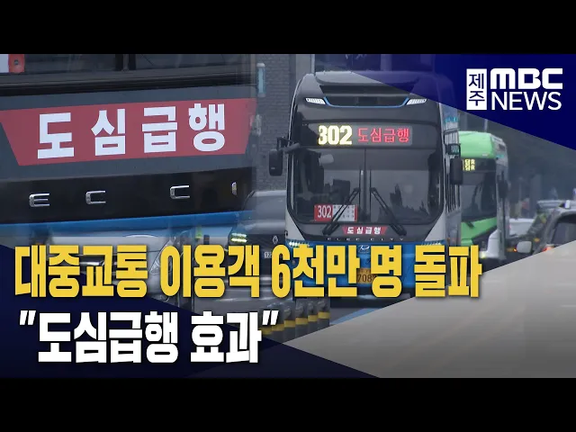 ◀ 앵 커 ▶ 지난해 제주 지역 대중교통 이용객이 6천 만 명을 넘어섰습니다. 코로나19 발생 이후 5년 만인데요. 도심급행버스 도입과 늘어난 외국인 승객이 한 몫을 한 것으로 풀이됩니다. 이소현 기자입니다. ◀ 리포트 ▶ 제주국제공항과 국제대를 잇는 제주시 도심급행버스. 재작년 새로 생긴 노선으로 시청과 제주대병원 ...