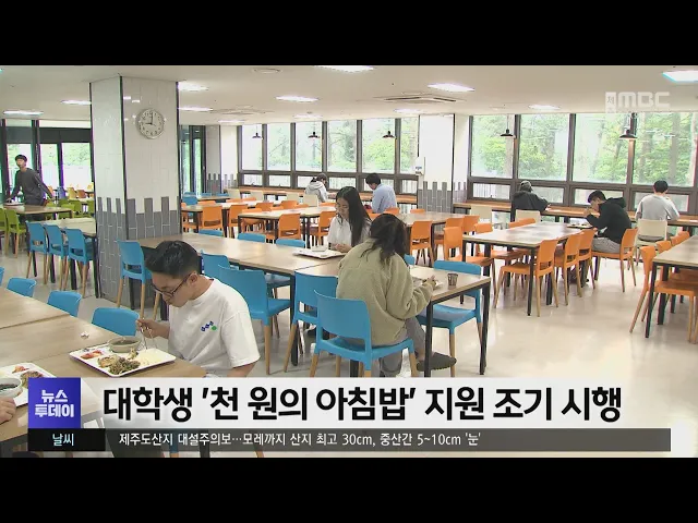 대학생들을 위한 천 원의 아침밥 지원 사업이 당초 계획보다 두 달 빠르게 시행됩니다. 농식품부가 사업 기간을 확대함에 따라 제주대학교는 겨울 방학 중인 오늘(6일)부터 천 원의 아침밥 사업을 시작하고, 제주관광대와 제주한라대는 1학기 개강과 함께 3월부터 운영할 예정입니다. 한편, 지난해 도내 3개 대학의 천 원...
