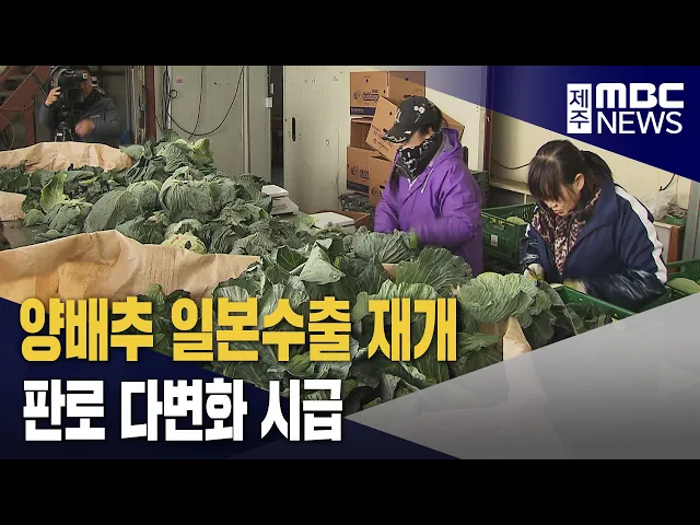 ◀ 앵 커 ▶ 코로나19로 수출이 중단됐던 제주산 양배추가 5년 만에 다시 일본 수출길에 올랐습니다. 양배추 수급 조절은 물론, 제주산 농산물 수출 재개에도 도움이 될 것으로 보입니다. 이소현 기자입니다. ◀ 리포트 ▶ 제주의 대표 월동 작물인 양배추. 대형 마대마다 양배추가 가득 실려있습니다. 옮겨진 양배추를 하나씩...