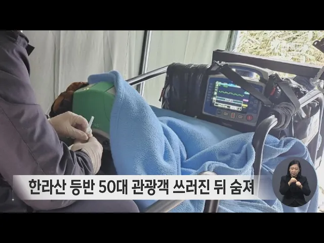 한라산을 오르던 50대 관광객이 갑자기 쓰러진 뒤 숨졌습니다. 오늘 오전 10시쯤 한라산 관음사 코스에서 50대 관광객이 쓰러졌고, 출동한 119에 의해 모노레일을 타고 병원으로 옮겨졌지만 숨졌습니다. 경찰은 호흡 곤란 증세를 보이며 쓰러졌다는 목격자의 말을 바탕으로 정확한 사고 경위를 조사하고 있습니다.