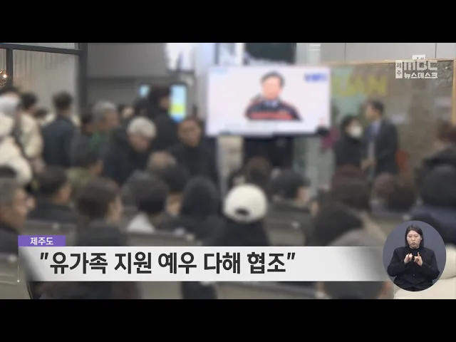 제주항공 여객기 참사로 제주도민 2명이 희생된 가운데, 제주도가 유가족 지원에 나섭니다. 제주도는 제주에서 장례를 치르길 희망하는 유족들과 장례 절차를 협의 중이며, 유족 대표단과 정부간 의견 조율을 거쳐 장례를 진행할 예정입니다. 또 공무원을 무안으로 파견해 유가족을 지원하고, 희생자들에게 도민안전보험과 ...