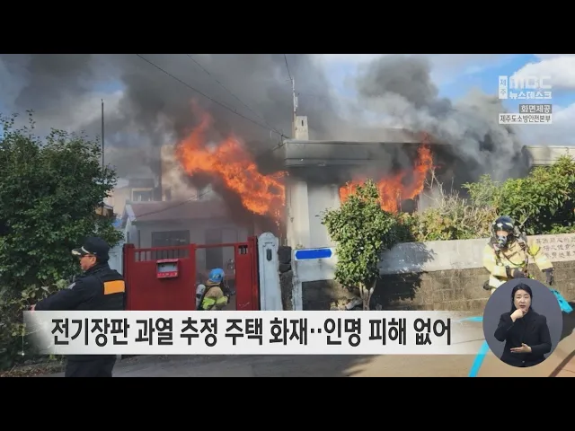 오늘 오전 10시쯤 서귀포시 성산읍의 단독주택에서 불이 나 안방 15㎡와 가재도구 등을 태워 소방서 추산 천200만 원의 재산피해가 났습니다. 화재 당시 집 안에 사람이 없어 다친 사람은 없었습ㄴ디ㅏ. 소방당국은 침대 매트리스 전기 장판을 켜놓았다는 집 주인의 말을 바탕으로 정확한 화재 원인을 조사하고 있습니다.