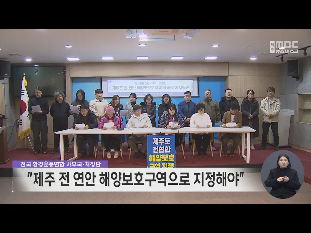 전국에 있는 환경운동연합 사무국과 처장단이 제주에 모여 해양보호구역 확대 지정을 촉구했습니다. 환경운동연합 52개 지역조직 관계자들은 제주도의회에서 기자회견을 열고 제주는 해양환경 보전 가치가 높은데 연안개발과 해양쓰레기 문제로 생태계 건강성이 위협받고 있다며 제주지역 모든 연안을 해양보호구역으로 지...