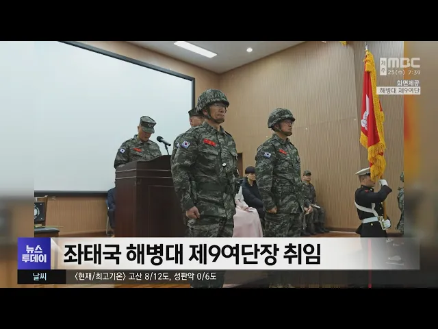 해병대 제9여단장에 제주 출신 좌태국 준장이 취임했습니다. 신임 좌 여단장은 제주시 한경면 고산리 출신으로 해군사관학교 49기로 임관해 해병대 제1사단 참모장과 합동참모본부 전력기획과장 등을 지냈습니다. 전임 박승일 준장은 해병대 사령부 전력기획실장으로 자리를 옮겼습니다.