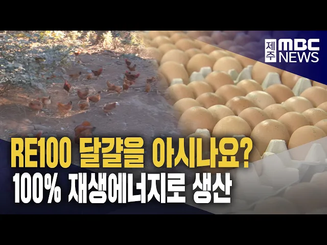 ◀ 앵 커 ▶ 알이백(RE100) 이라고 들어보셨나요? 탄소 배출을 줄이기 위해 풍력과 태양광 등 재생 에너지를 100% 활용하는 것을 뜻하는데요. 제주에서 전국 최초로 RE100 달걀이 선보여 눈길을 끌고 있습니다. 이소현 기자입니다. ◀ 리포트 ▶ 제주 중산간 목장에서 방목해 키우는 닭들. 사육장 문을 열어놔 자유롭게 돌아다...