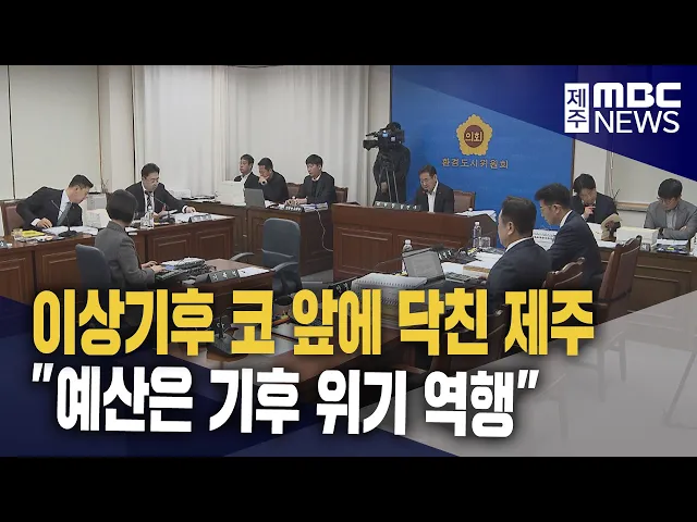 ◀ 앵 커 ▶ 제주도의회가 내년 제주도 예산을 심사 중인 가운데, 오늘은 기후 환경에 대한 제주도의 관심 부족이 도마에 올랐습니다. 위원회는 기후 환경 예산이 크게 줄어든 데다 오 지사의 시정연설에서도 기후 환경 대책에 대한 의지 부족이 엿보인다고 지적했습니다. 이소현 기자입니다. ◀ 리포트 ▶ 30일 넘게 이어진 폭...