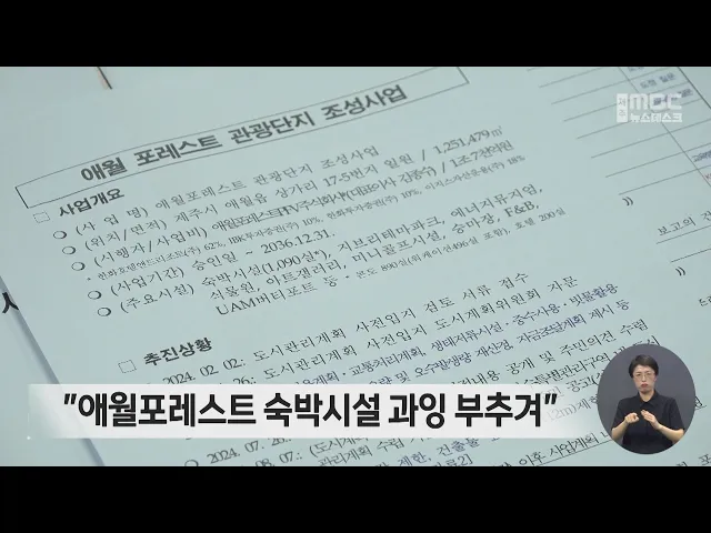 제주도의회 임시회에서 한화 애월포레스트 복합리조트 개발사업이 도마에 올랐습니다. 강철남 더불어민주당 도의원은 임시회 문화관광체육위원회 제2차 회의에서 숙박시설의 폐업이 잇따르는 가운데, 천 실이 넘는 호텔과 콘도가 들어서는 것은 과부하를 부추기는 것이라고 지적했습니다. 또 양영수 진보당 도의원도 애월포...