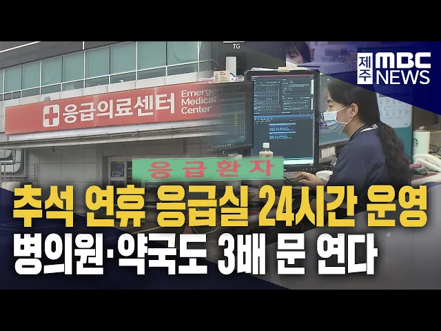 의료 대란 속에, 제주에서는 추석 연휴 기간 600곳이 넘는 병원과 약국이 문을 엽니다. 제주도에 따르면, 연휴 기간 문을 여는 개인 병원과 약국, 보건기관은 모두 637곳으로 지난 설 연휴 때보다 2.5배 늘었습니다. 특히 도내 6개 종합병원 응급실은 24시간 정상 운영하며, 제주의료원은 오전 8시 반부터 오후 5시 반까지 ...