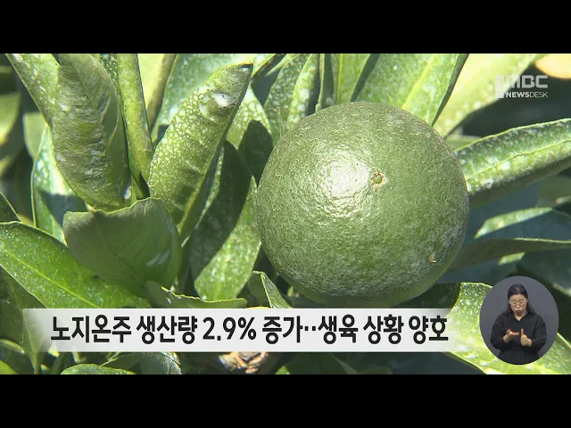 올해 노지온주 생산량이 지난해보다 다소 증가할 것으로 전망됐습니다. 한국농촌경제연구원에 따르면 올해 노지온주 예상 생산량은 41만 8천 톤으로 작년보다 2.9% 증가했는데, 제주시 지역의 열매량이 늘어났기 때문으로 분석됩니다. 한편, 생육 상황은 최근 태풍 피해가 없었던 만큼 평년 대비 양호한 수준이지만, 최근 ...