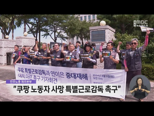 제주에서 노동자 사망 사고가 이어지면서 노동계가 진상 규명과 함께 재발방지 대책 마련을 촉구했습니다. 민주노총 제주지역본부는 정부제주지방합동청사 앞에서 기자회견을 열고 지난 달 도내 쿠팡 노동자 2명이 쓰러지고 그 중 1명이 숨졌는데도 고용노동부의 특별근로 감독이 이뤄지지 않고 있다며 재방방지대책이 마련...