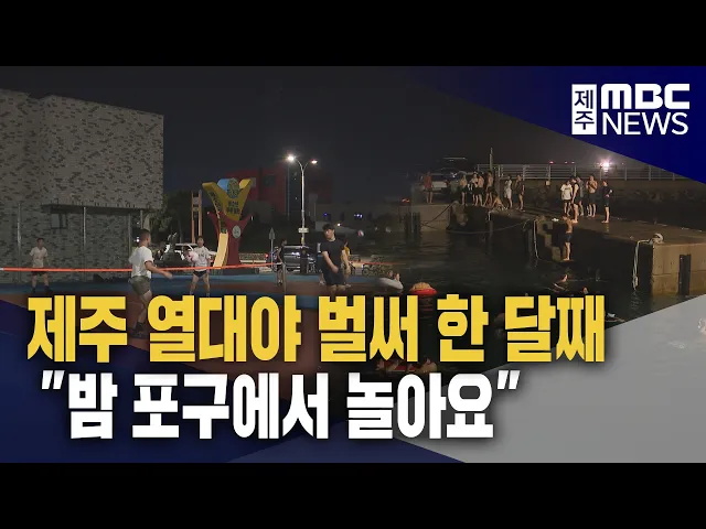 ◀ 앵 커 ▶ 밤낮으로 찜통더위가 기승을 부리면서 제주는 벌써 한 달 넘게 열대야가 이어지고 있는데요. 최대 전력 수요량은 이번 여름 들어서만 일곱 번 기록을 갈아치웠고, 포구와 공원에는 야간에 피서객들이 몰리고 있습니다. 열대야를 나는 도민들 모습을 이소현, 손세호 기자가 둘러봤습니다. ◀ 리포트 ▶ 물결이 잔잔...