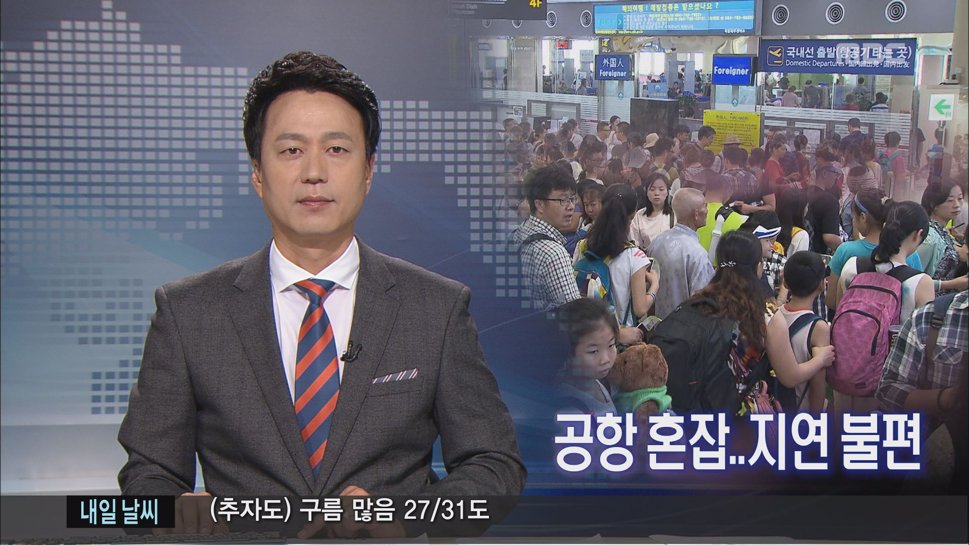 피서 관광이 절정으로 치달으면서 공항 혼잡에 따른 불편이 이어졌습니다. 한국공항공사 제주지역본부에 따르면 오늘 오후 5시 30분, 제주에서 대구로 갈 예정이던 제주항공 여객기가 1시간 지연되는 등 제주공항 혼잡으로 항공기 104여 편이 무더기 지연 운항됐습니다. 오늘 하루 제주공항에는 출발과 도착편 승객 8만 명...