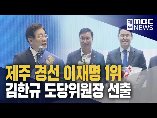◀ 앵 커 ▶ 더불어민주당의 차기 당 대표 선출을 위한 전국 순회 경선이 오늘 제주에서 처음으로 열렸는데요. 이재명 후보가 권리당원 투표에서 80% 넘는 득표율을 기록했습니다. 함께 열린 제주도당 대의원회에서는 김한규 의원이 도당위원장에 선출됐습니다. 이소현 기자입니다. ◀ 리포트 ▶ 더불어민주당 새 지도부 선출...