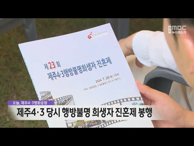 70여 년 전 제주4·3 당시 행방불명된 희생자의 넋을 기리기 위한 진혼제가 오늘, 제주4·3평화공원 행방불명인표석 위령제단에서 봉행됐습니다. 양성홍 제주4·3행방불명인유족협의회장은 4·3희생자에 대한 개별 보상이 진행되고 있음에도 여전히 해결해야 할 과제가 많다며 유족들은 끝까지 명예회복과 진상 규명을 위해 ...