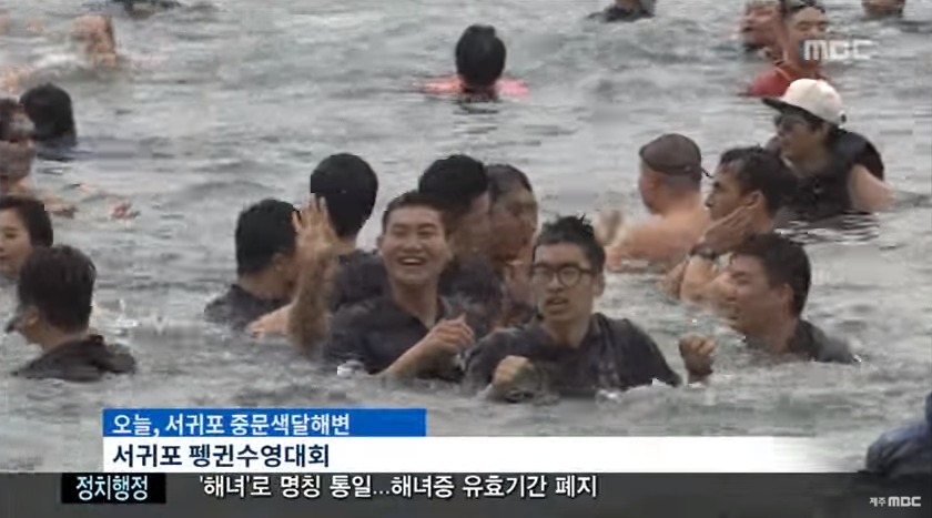 ◀ANC▶ 겨울 찬 바닷 속에 뛰어들어 새해 새로운 각오를 다지는 사람들이 있습니다. 서귀포 앞바다에서 열린 펭귄 수영대회인데요. 겨울 파도를 헤치며 2016년의 새출발을 다짐하는 현장을 이소현 기자가 다녀왔습니다. ◀END▶ ◀VCR▶ 쪽빛 파도가 태평양에서 밀려오는 서귀포 중문색달해변. 한 겨울 백사장을 수영...