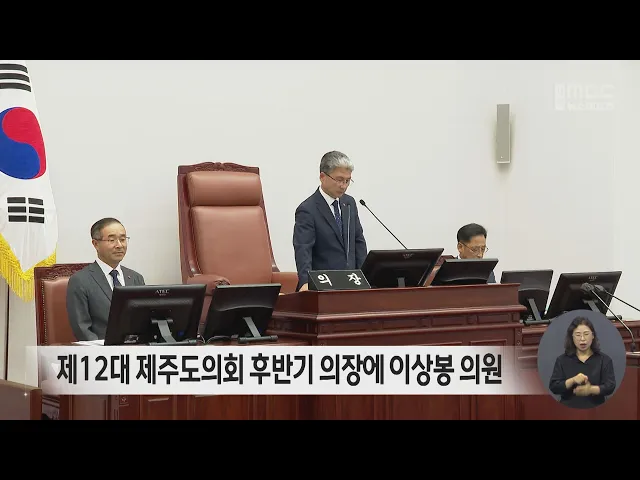 제12대 제주도의회 후반기 의장에3선인 더불어민주당 이상봉 의원이 선출됐습니다.이 의장은 당선 인사말을 통해제주 제2공항 기본계획 고시가 예고됨에 따라어느 때보다 도의회의 역할이 중요하다며, 도민의 화합과 뜻을 최우선에 두고갈등의 중재자로서 소통하며방법을 찾아나겠다고 밝혔습니다.후반기 부의장에는더불어...