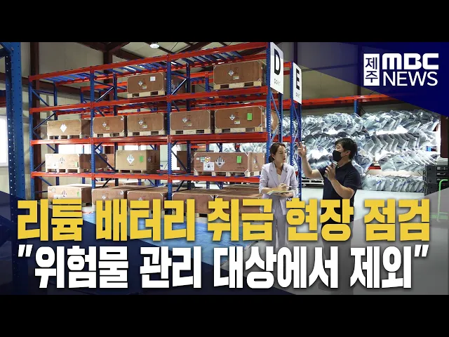 ◀ 앵 커 ▶경기도 화성시 리튬 배터리 공장 화재와 관련해제주에도 14곳의 배터리 취급 업체가 있다는 소식, 전해드렸는데요.화재 진압장비를 아직 갖추지 못한 가운데제주도와 소방당국이 현장을 찾아 합동점검을 벌였습니다.이소현 기자입니다.◀ 리포트 ▶전기차에 쓰고 나온 리튬 배터리를 보관하는 제조업체.민관으로 구...