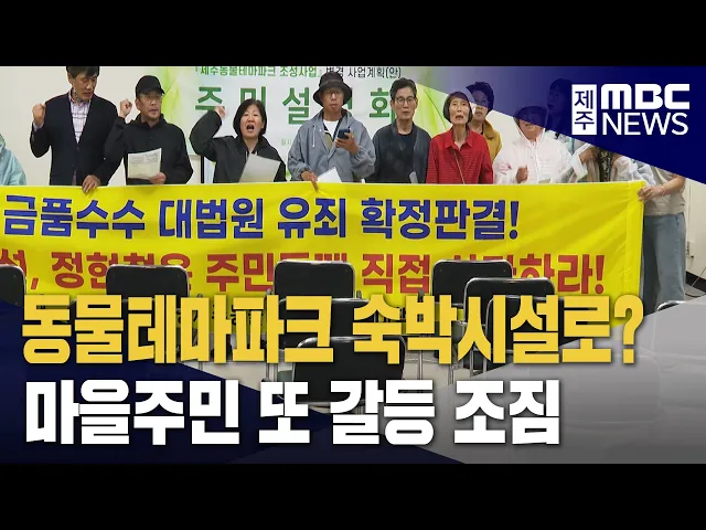 ◀ 앵 커 ▶ 제주시 조천읍 선흘2리는 동물테마파크 개발사업을 놓고 주민들 사이에서도 큰 갈등을 겪었는데요. 사업자와 이장은 부정청탁으로 유죄 판결까지 받았는데, 개발사업이 이름과 내용을 바꿔 다시 추진되면서 또다시 갈등이 커지고 있습니다. 이소현 기자입니다. ◀ 리포트 ▶ 제주동물테마파크 사업 변경 내용을 주...