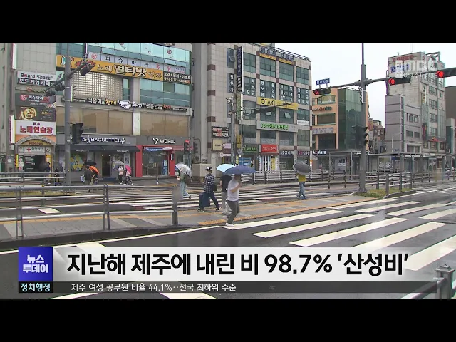 제주에 내린 비 대부분이 산성비인 것으로 나타났습니다.제주보건환경연구원에 따르면,지난해 제주시 연동 대기측정소에서 관측된비 오는 날은 모두 150일로, 이 가운데 98.7%인 148일 강수에서 ph5.6 미만의 산성비가 측정됐습니다. 제주보건환경연구원은인구 유입과 자동차, 배출가스 증가 등의 영향으로대기 질이 나빠진...