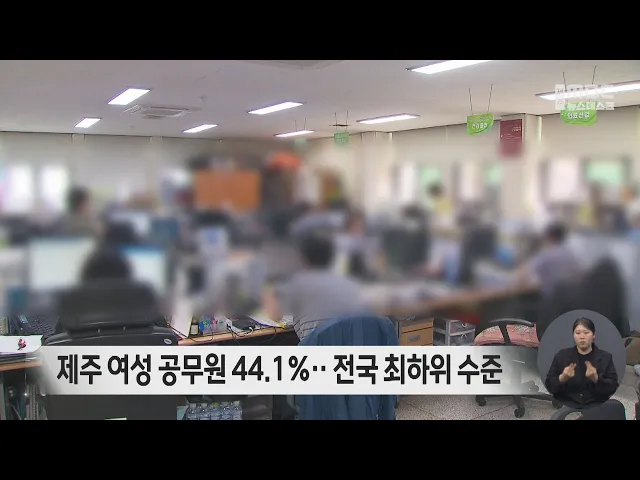 제주도 여성 공무원 비율이전국에서 최하위 수준에 머물렀습니다.행정안전부에 따르면지난해 제주도의 여성 공무원 비율은 44.1%로전국에서 두 번째로 여성 공무원의 비율이 낮았습니다.부산이 56%로 전국에서 가장 많았고, 서울과 인천 순이었으며, 제주와 부산의 격차는 10% 포인트가 넘었습니다.