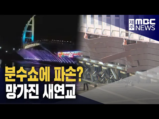 ◀ 앵 커 ▶제주의 야간 관광 명소인 서귀포시의 새연교는 분수쇼로 유명한데요.그런데 분수시설이 설치된 다리 벽면 곳곳이벌어지고, 뜯어져 방치되고 있습니다.어찌 된 일인지 제보는MBC,이소현 기자가 취재했습니다. .◀ 리포트 ▶서귀포항과 새섬을 연결하는 새연교.관광미항으로 제주의 대표 관광지입니다.그런데 난간 아...