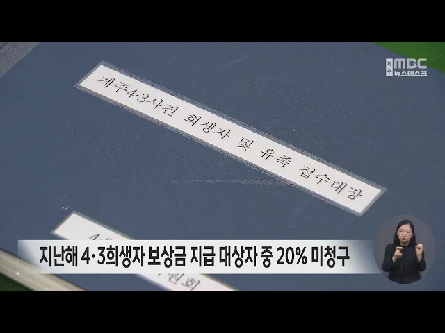 지난해 결정된 4·3희생자 보상금 지급 대상자 가운데 20%가 보상금을 청구하지 않은 것으로 확인됐습니다. 제주도는 지난해 제주4.3위원회에서 2만9천625명에 대해 보상금 지급 대상자로 심의 결정했지만 이 가운데 20%인 5천945명이 보상금을 청구하지 않았다고 밝혔습니다. 이에따라 제주도는 보상금 청구 안내문을 보내...