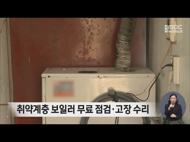 제주도가 취약계층 가정을 대상으로보일러 무료점검과 고장 수리를 지원합니다.지원 대상은기초생활수급자와 차상위계층,한부모 가정 등이며읍·면·동 주민센터를 통해무료로 신청이 가능합니다.한편, 제주도는최근 3년 동안 9천만 원을 투입해도내 341가구에 보일러 무료 점검과 수리를 지원했습니다.