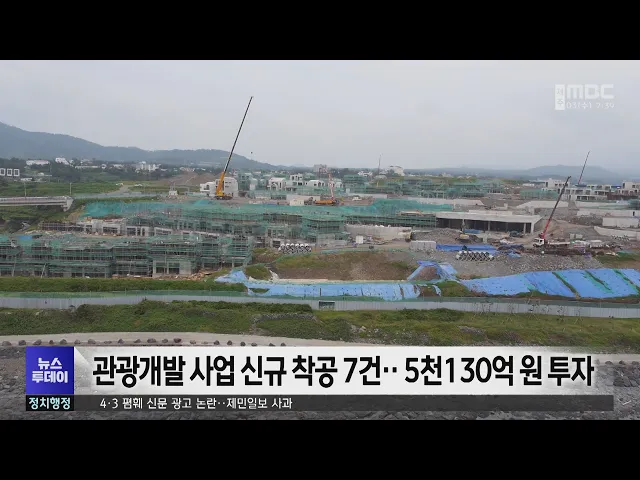 제주지역 대규모 관광개발 사업장의건축공사 투자가 늘고 있습니다.제주도에 따르면지난해부터 대규모 개발사업장의 건축 허가가 늘어 올해 7개 신규 건축공사가 착공될 예정이며투자비는 5천130억 원 규모입니다. 또 내년 초에는 신화역사공원 숙박시설 등의 건축공사가 추가로 이뤄질 것으로 보이는데, 외국인 관광객이 ...
