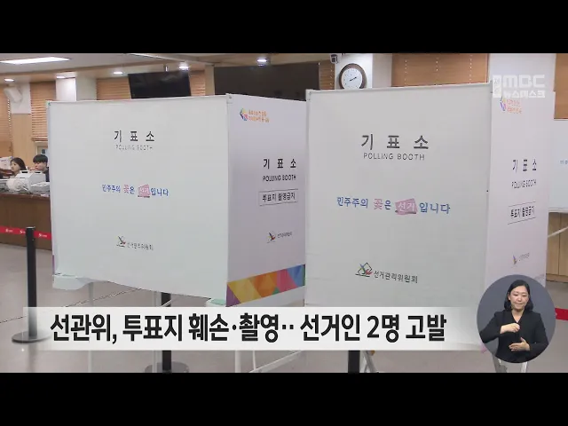 사전투표소에서 공직선거법을 위반한유권자 2명이 경찰에 입건됐습니다. 제주도선거관리위원회는 지난 6일 사전투표소에서 비례대표 투표지를 훼손한 유권자와, 투표지를 촬영해 SNS로 지인에게 전송한 유권자 등 2명을 선거법 위반 혐의로 경찰에 수사를 의뢰했습니다. 공직선거법상투표용지나 투표지를 훼손할 경우최대 1...