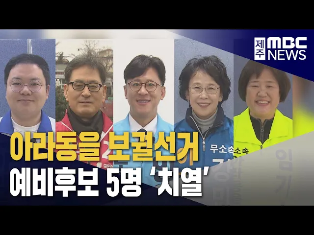◀ 앵 커 ▶ 오는 4월 국회의원 선거와 함께제주에서는 '아라동을' 도의원 보궐선거도 치러지는데요.강경흠 전 민주당 의원의 사퇴로 치러지는데현재 5명이 출사표를 던져 치열한 선거가 예고되고 있습니다. 이소현 기자입니다.◀ 리포트 ▶ 오는 4월 국회의원 총선거와 함께 치러지는제주시 아라동을 도의원 보궐선거. 민주당 ...