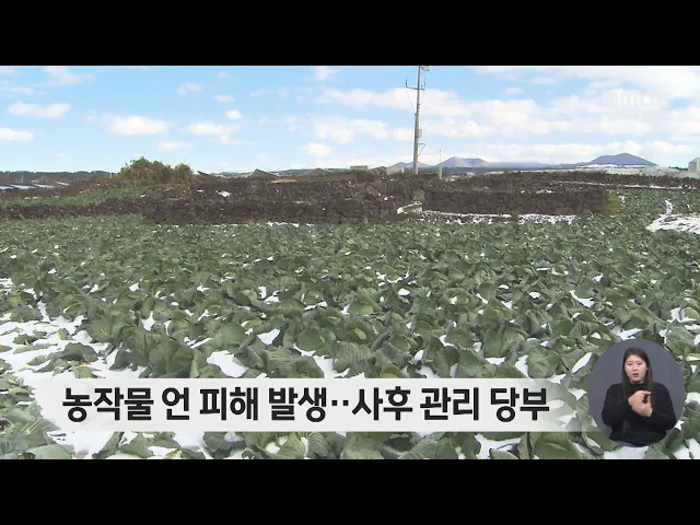 폭설과 한파로제주 전 지역이 영하권에 들면서농작물 언 피해가 나타나고 있습니다.제주도 농업기술원은아직 수확하지 않은 무와 양배추,브로콜리와 콜라비 등 월동채소와 난방시설이 없는 시설 감귤류 등에언 증상이 나타나고 있다며눈이 녹은 뒤에는습기로 인한 병해충 예방을 위해배수로를 정비할 것을 당부했습니다.또 ...