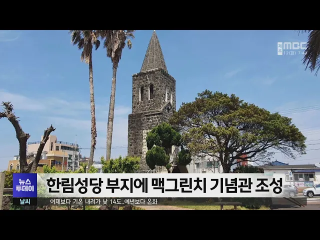 제주 양돈산업 부흥을 이끈 고 맥그린치 신부를 기리기 위한 기념관이 한림성당에 조성됩니다. 제주도는맥그린치 신부가제주에 처음 부임했던 한림성당의 옛 건물 가운데 지난해 6월 등록문화재로 지정된 종탑을 중심으로다음 달 기념관 조성 공사를 시작한다고 밝혔습니다. 맥그린치 신부는 한국전쟁 직후 제주도에 건너와...