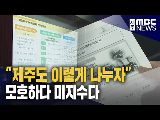 ◀ 앵 커 ▶ 제주형 행정체제 개편 용역이막바지에 접어든 가운데, 새로운 행정체제를도입하기 위한 구체적인 실행방안이처음 공개됐습니다. 하지만 개편에 따른 도민 이익이 구체적이지 않고 정부가 나눠주는 세금은어떻게 분배할 것인지도 모호하다는 비판이나옵니다.이소현 기자입니다.◀ 리포트 ▶ 제주형 행정체제 도입을 ...