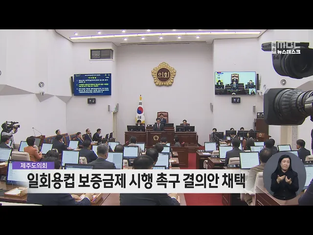 제주도의회가 정부의 일회용컵 보증금제 철회 방침에 반대하며 정책의 책임 있는 추진을 촉구했습니다.도의회는제423회 임시회 본 회의에서일회용품 보증금제 형평성 해소를 위한시행령 개정과 전국 시행 촉구 결의안을만장일치로 가결해 채택했습니다. 도의회 본회의를 통과한 이 결의안은 대통령실과 국회를 비롯해각 정...