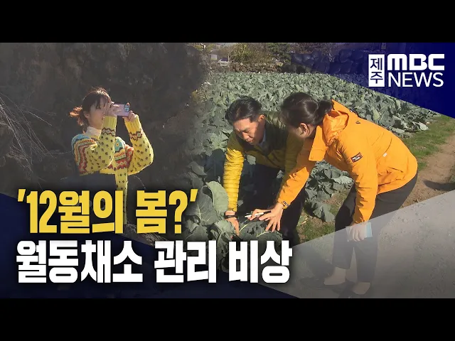 ◀ 앵 커 ▶ 오늘 제주지방은 12월 겨울이라는게무색할 만큼 포근한 날씨를 보였는데요.이 달 중순까지 평년보다 기온이 높을 것으로 예상되면서온도에 민감한 월동작물은 비상이 걸렸습니다.이소현 기자입니다.◀ 리포트 ▶구름 한 점 없이맑은 하늘 아래 펼쳐진 쪽빛 바다.밀려오는 파도마저 시원해 보입니다.산책로에는 겨울...