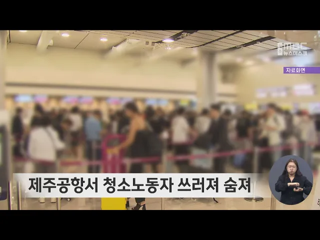 제주공항에서 청소노동자가 쓰러져 병원으로 옮겨졌지만 숨졌습니다. 제주도소방안전본부에 따르면 어젯밤 9시 50분쯤 공항 국내선 대합실 화장실 앞에서 청소노동자인 50대 여성이 쓰러졌고, 공항내 편의점 직원이 발견해 119에 신고했습니다. 이 여성은 심폐소생술을 받으며 병원으로 옮겨졌지만 숨졌고, 경찰과 소방당국...