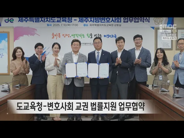 최근 교권 침해 사건이 잇따른 가운데 제주도교육청이 교원의 교육활동 보호를 위해 제주지방변호사회와 법률지원 업무협약을 맺었습니다. 협약에 따라 두 기관은 제주지역 각급 학교에 지정 변호사를 연결하는 '우리학교 변호사제도'를 운영하고, 교원의 권익 보호를 위한 법적 지원을 대폭 강화하기로 했습니다.