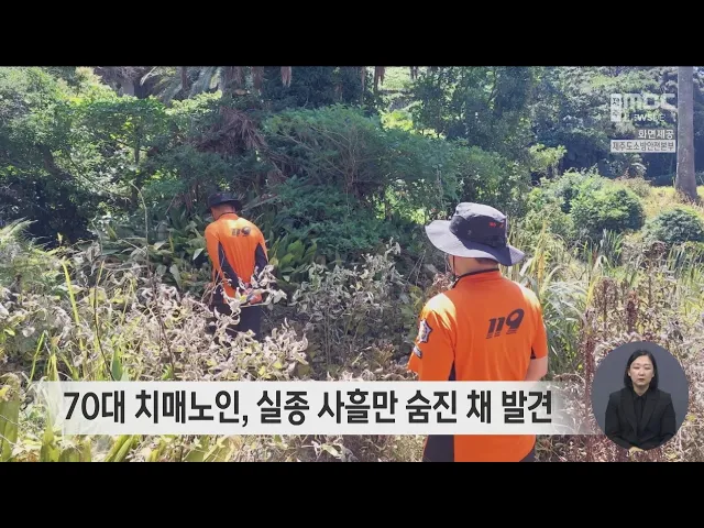 가족과 연락이 끊겨 실종상태였던 70대 치매 노인이 사흘 만에 숨진 채 발견됐습니다. 제주소방안전본부에 따르면 오늘 오후 3시 서귀포시 토평동 풀숲에서 70대 남성이 숨진 채 발견됐습니다. 경찰은 그제 낮 12시부터 가족의 신고를 받고, 휴대전화 위차가 확인된 토평동 주변을 수색해왔습니다.