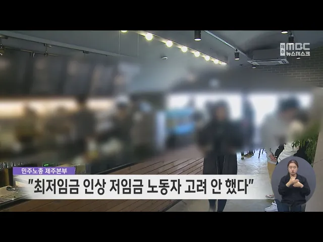 내년 최저임금이 올해보다 2.9% 오른 시간당 만320원으로 결정된 가운데 민주노총 제주본부가 저임금 노동자의 생계비를 전혀 고려하지 않은 결정이라고 비판했습니다. 민주노총 제주본부는 성명을 통해 이번 최저임금 인상률이 역대 정부의 집권 첫해 인상률 중 최저라며 새정부가 내란세력 청산이란 국민적 염원을 안고 ...